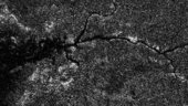 A miniature version of the Nile River, seen on Saturn’s moon Titan by the international Cassini mission. The river valley stretches more than 400 km from its ‘headwaters’ to a large sea, and likely contains hydrocarbons.