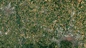 Optical satellite imagery like this can be used to monitor agriculture and changing landscapes. Satellites can provide the information necessary to make informed decisions on agricultural management, including yield prediction, irrigation, planting, pricing and regional need for food assistance if a harvest is likely to fail.