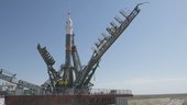 This timelapse video shows the Soyuz TMA-13M spacecraft during roll out from its MIK preparation building, raising the launcher into its vertical liftoff position on the launch pad, and the launch 28 May 2014 from the Russian Baikonour cosmodrome in Kazakhstan.