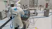 A Galileo FOC spacecraft undergoes fuelling at Europe’s Spaceport in Kourou, French Guiana. Two Galileo FOC spacecraft are being prepared for launch with Arianespace Flight VS09, scheduled for launch on 21 August.