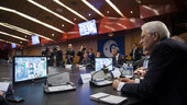 The President and the Italian Undersecretary of State Mario Giro were welcomed to ESA by Director General Jean-Jacques Dordain together with ESA Director of Finance Controlling and Information Technology Giuseppe Morsillo and ESA Director of Technical and Quality Management Franco Ongaro.