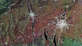 This image, also featured on the Earth from Space video programme, combines three radar scans from the Sentinel-1A satellite in March and April 2015.