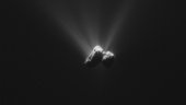 This single frame Rosetta navigation camera image of Comet 67P/Churyumov-Gerasimenko was taken on 16 August 2015 from a distance of 331 km from the comet centre. The image has a resolution of 28.2 m/pixel and measures 28.9 km across.
