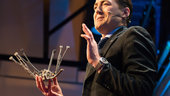 What might almost be an alien lifeform being shown by ESA materials specialist Tommaso Ghidini during his TEDxESA talk on 3D printing for space.