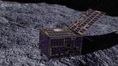 Light-emitting diodes (LEDs) would help AIM to pinpoint its microlander’s resting place from orbit. In case of a landing in a non-illuminated area, a spring-like ‘mobility mechanism’ would let the microlander jump to another location. Onboard GNC ‘guidance navigation and control’ sensors would gather details of the landing both for scientific reasons and to determine the microlander’s orientation for deployment of the solar array to keep it supplied with sufficient power for several weeks of surface operations.