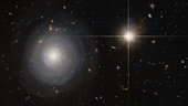 This image was taken by the NASA/ESA Hubble Space Telescope’s Advanced Camera for Surveys (ACS), and shows a starburst galaxy named MCG+07-33-027. This galaxy lies some 300 million light-years away from us, and is currently experiencing an extraordinarily high rate of star formation — a starburst. Normal galaxies produce only a couple of new stars per year, but starburst galaxies can produce a hundred times more than that! As MCG+07-33-027 is seen face-on, the galaxy’s spiral arms and the bright star-forming regions within them are clearly visible and easy for astronomers to study.