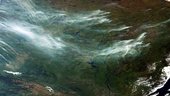 Wildfires break out in the boreal forests of eastern Russia most summers, but 2016 has been particularly bad, with numerous blazes since July. This image, which was taken by the Copernicus Sentinel-3A satellite on 14 September, shows smoke billowing from a string of fires northwest of Lake Baikal in Siberia. These huge smoke plumes stretch over 2000 km. It is thought that drier conditions associated with warmer weather – this June being the hottest on record – have contributed to the unusually large number of fires.