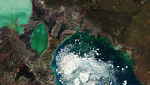 Large chunks of broken ice float in east-central Kazakhstan’s Alakol Lake in this Copernicus Sentinel-2 image from 5 April 2016.