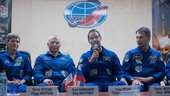 Prime and backup crewmembers during the pre-launch press conference, on 16 November 2016, in Kazakhstan.