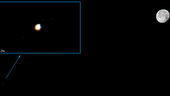 For illustration purposes, Mars has been highlighted and enlarged twenty times: the ‘Red Planet’ has a radius of 3389 km but at the time was roughly 67 million km from Earth while the Moon has a radius of 1737 km and was at a distance of around 411 000 km.