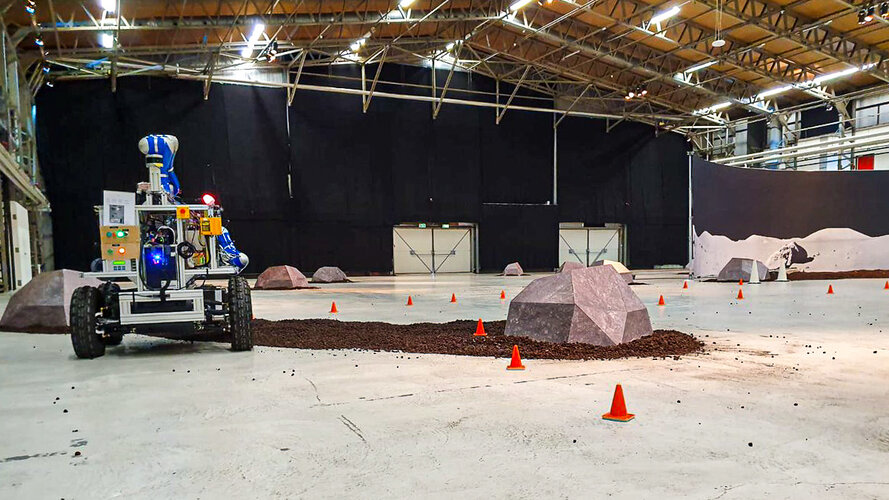 A week later all elements of the overarching Meteron project will be put to the test. Luca will drive the robot to three sites in the hangar in the Netherlands and decide in collaboration with a science team based at the European Astronaut Centre in Cologne, Germany, which rocks to pick up and keep for later analysis.