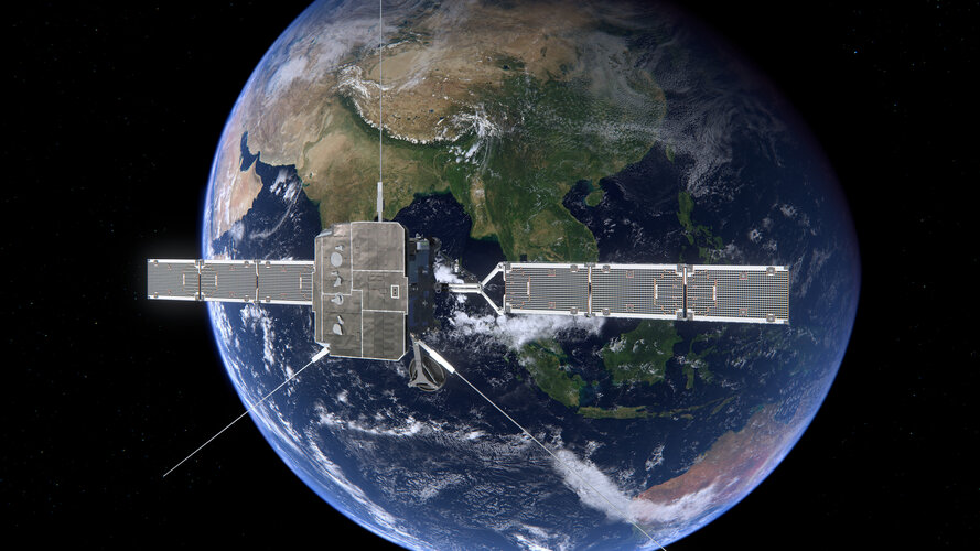 Artist’s impression of Solar Orbiter following launch, with solar arrays and antennas deployed.