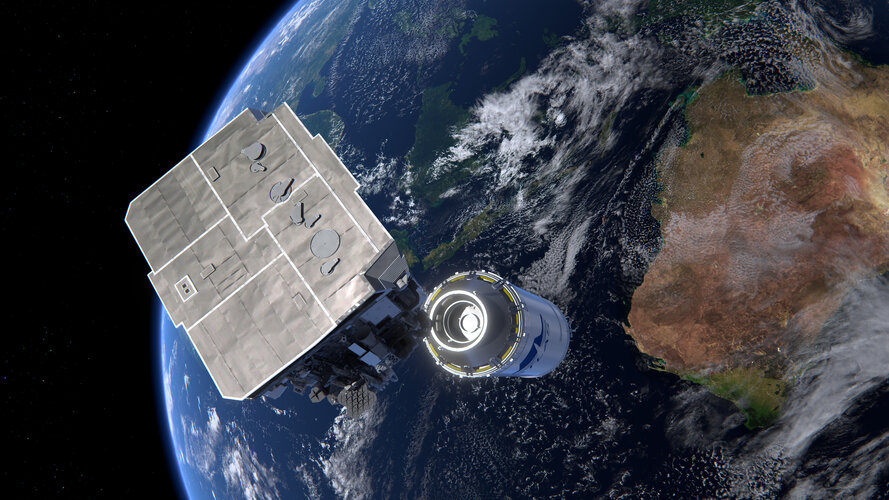 Artist’s impression of Solar Orbiter following separation from the Centaur upper stage of the Atlas V 411 rocket launching the mission into space.