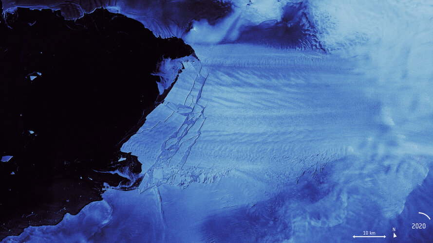 These changes have been mapped by ESA-built satellites since the 1990s, with calving events occurring in 1992, 1995, 2001, 2007, 2011, 2013, 2015, 2017, 2018, and now 2020.