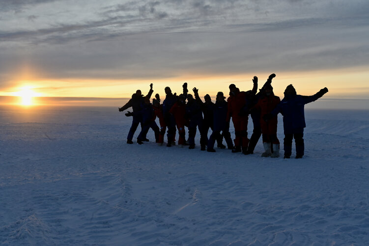 The 16th crew at Concordia research Station in Antarctica to spend a full winter at the facility, wave goodbye to the Sun as it descends below the horizon, not to return for four months.