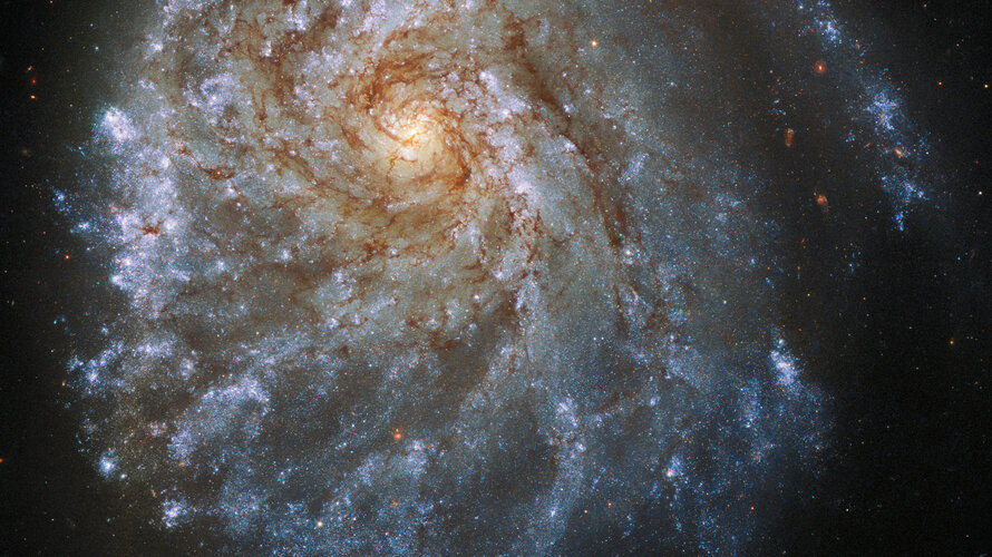 This spectacular image from the NASA/ESA Hubble Space Telescope shows the trailing arms of NGC 2276, a spiral galaxy 120 million light-years away in the constellation of Cepheus. At first glance, the delicate tracery of bright spiral arms and dark dust lanes resembles countless other spiral galaxies. A closer look reveals a strangely lopsided galaxy shaped by gravitational interaction and intense star formation.