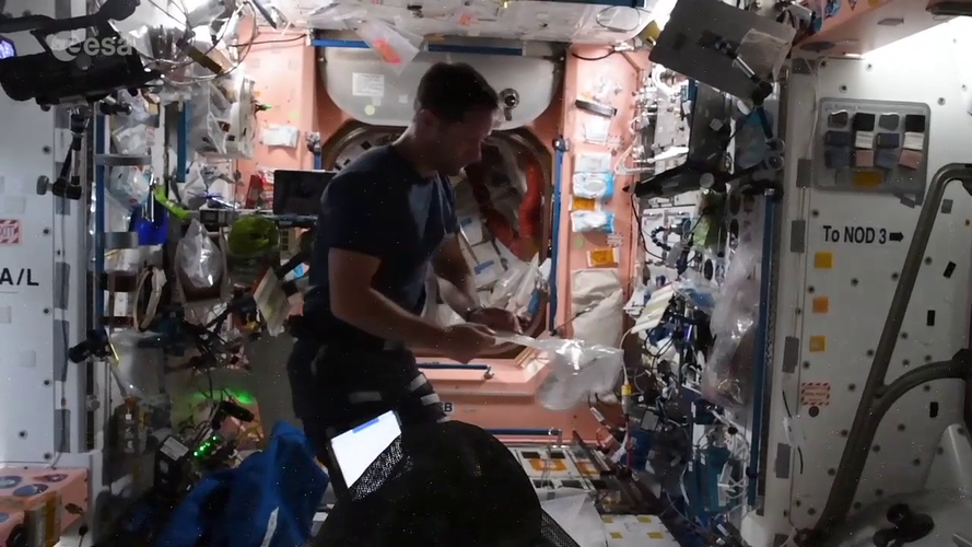 English You might think, what is he doing here again? It is actually, believe it or not, a spacewalk procedure! We degas the water that goes into our drinking bags and cooling systems so the pumps do not to cavitate. This is when small gas bubbles implode and can cause damage, not something you want to happen during a spacewalk. How do you get air out of water in microgravity? Centrifugal force! I was just being a human-powered centrifuge here. Everything in space is different, and you need to think of all scenarios if you want to survive and thrive, anything that relies on gravity (like air bubbles rising to the surface) needs to be thrown out of the window and rethought…