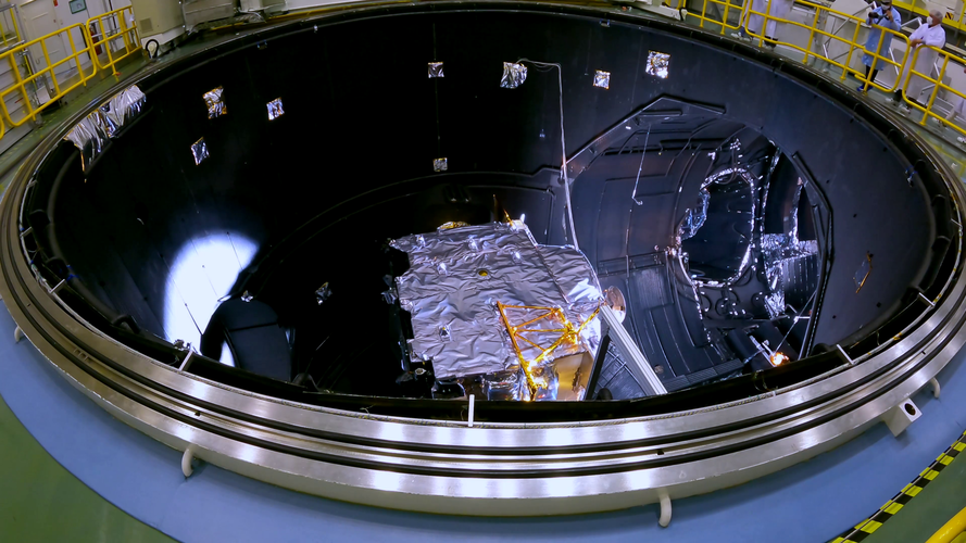 Juice is in the Large Space Simulator (LSS), a unique facility in Europe (run by the European Test Center, at ESA/ESTEC in the Netherlands) that can simulate the vacuum and cold and hot temperature conditions in space, and also the Sun itself!