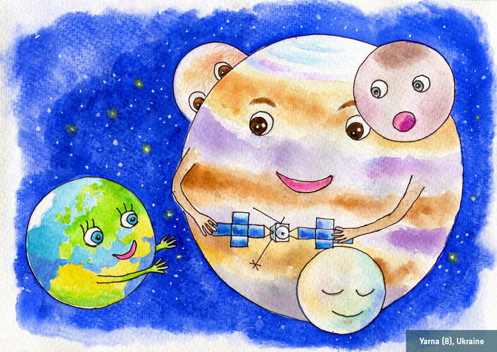 We received astounding works of art from kids in 63 countries who put their personal touch on Europe’s mission to the largest planet in our Solar System, the Jupiter Icy Moons Explorer (JUICE).