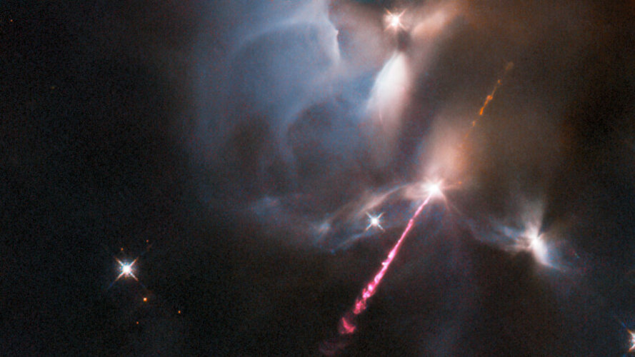 Hubble snaps a jet set Click here for original story, Hubble snaps a jet set Source: ESA Top Multimedia